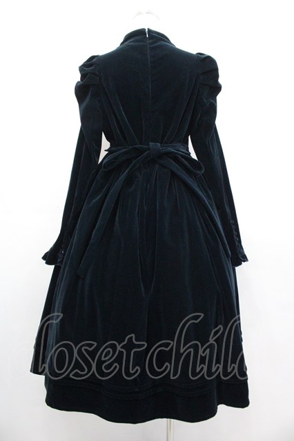 axes femme kawaii / クラシカルベロアワンピース ブルーグリーン I-25-10-29-031-AX-OP-SA-ZI