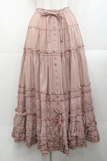 PINK HOUSE / 綿レース使いアンティークギンガムスカート ピンクチェック I-25-10-29-083-LO-SK-SA-ZI