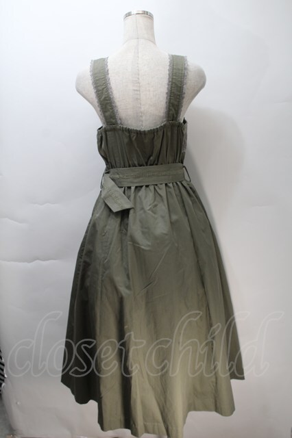 axes femme / ベルト付きミリタリージャンパースカート カーキ S-25-10-30-048-AX-OP-HR-ZS