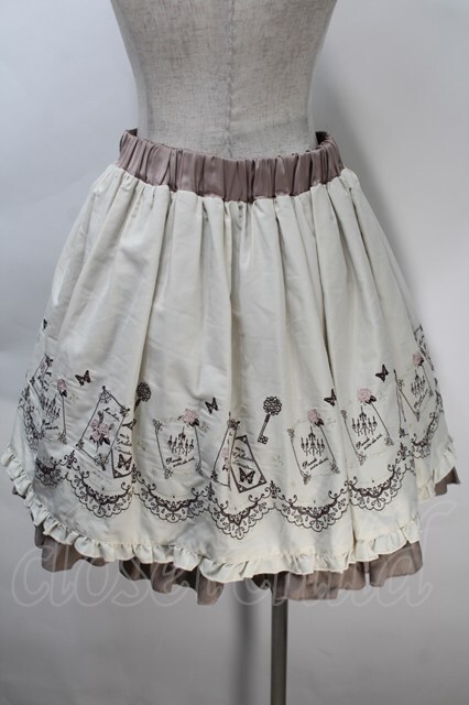 axes femme / カード刺繍スカート キナリxベージュ S-25-10-30-058-AX-SK-HR-ZS