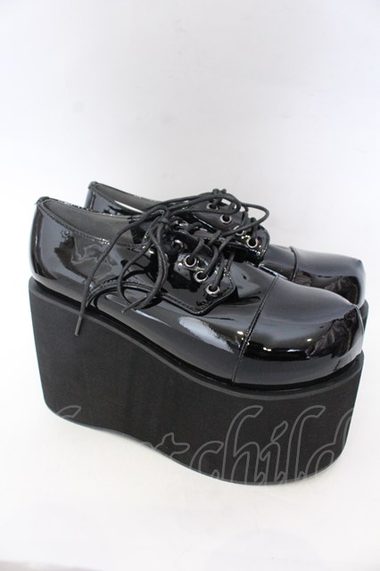 DearMyLove / 11cm厚底レースアップおでこパンプス 25.5cm ブラックエナメル O-25-10-31-2074-EL-SH-OW-OS [戻る]