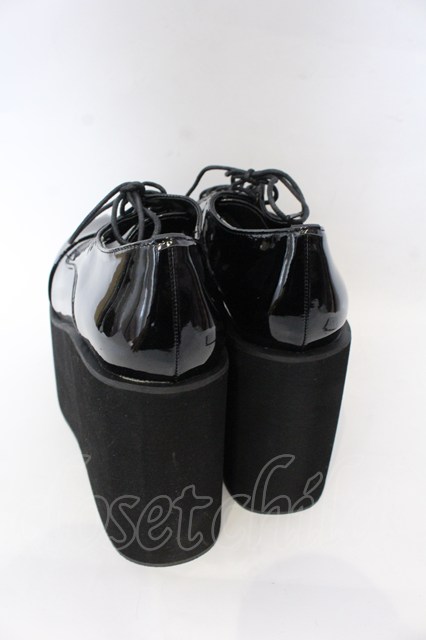 DearMyLove / 11cm厚底レースアップおでこパンプス 25.5cm ブラックエナメル O-25-10-31-2074-EL-SH-OW-OS