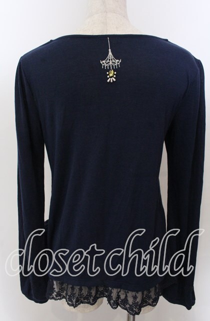 axes femme / シャンデリア刺繍カットソー M ネイビー O-25-10-30-1085-AX-TO-IG-OS