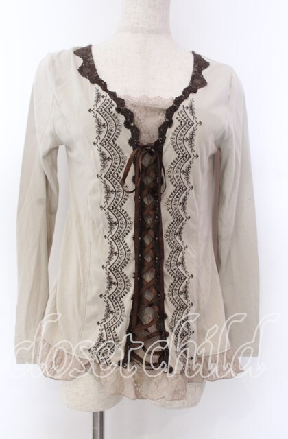 axes femme / レースアップカットソー M ベージュ O-25-10-30-1077-AX-TO-IG-OS
