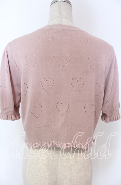 axes femme kawaii / ハート柄透かし半袖ニットカーディガン M ピンク O-25-10-30-1028-AX-TO-OW-OS