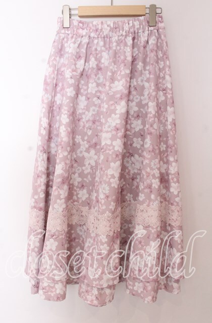 axes femme / サクラ柄フレアスカート F ピンク O-25-10-30-1052-AX-SK-OW-OS