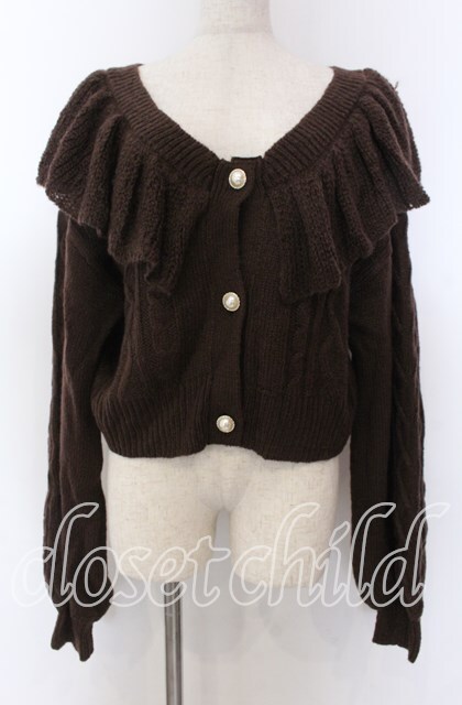 axes femme kawaii / フリル襟ショートニットカーデ M ブラウン O-25-10-30-1074-AX-TO-IG-OS