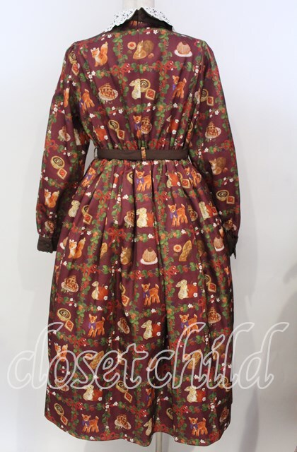 axes femme kawaii / 森のケーキ屋さん柄ワンピース M ワイン O-25-10-30-1001-AX-OP-OW-OS