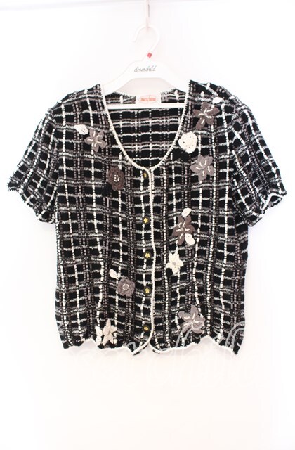 TOMATSU / フラワーモチーフチェックカーディガン クロ O-25-10-31-084-LO-TO-IG-OS [戻る]