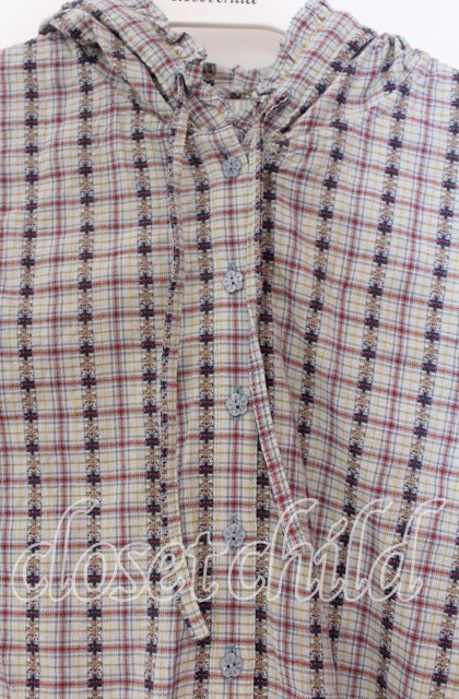 PINK HOUSE / チェックフードブラウス L サックス O-25-10-31-069-LO-BL-IG-ZI