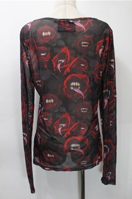 KILL STAR / プリントメッシュトップス S 黒x赤 S-25-10-31-060-SL-TO-HR-ZS
