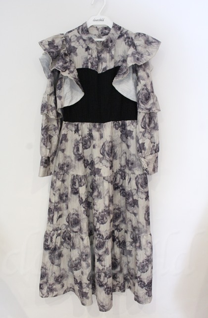 axes femme / グラデーションローズ柄ワンピース クロ O-25-10-31-3032-AX-OP-IG-OS