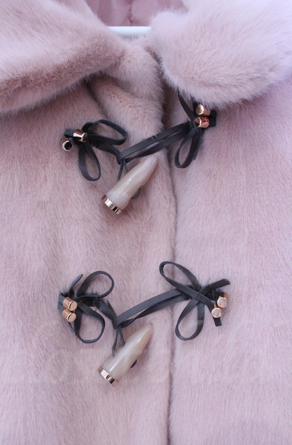 axes femme POETIQUE / リボントグル釦ファーコート ピンク O-25-10-31-3001-AX-CO-IG-OS