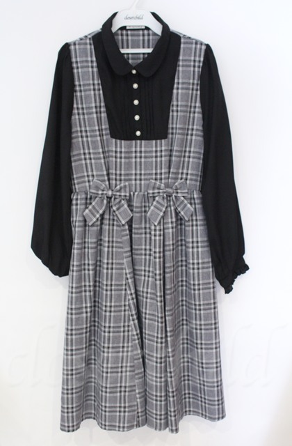 axes femme / チェックリボンドッキングワンピース クロ×グレー O-25-10-31-3028-AX-OP-IG-OS