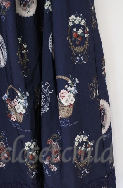 axes femme / アンティークフルーツ柄スカート ネイビー O-25-10-31-3044-AX-SK-IG-OS