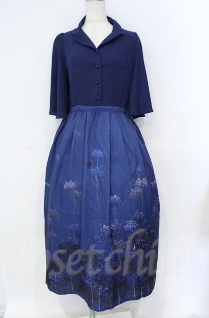 axes femme / 彼岸花柄ワンピース L ブルー O-25-10-31-3016-AX-OP-IG-OS