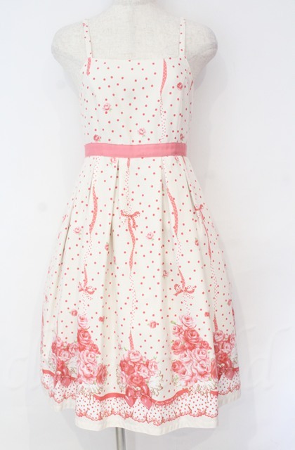 Emily Temple cute / ROSEブーケバックリボンワンピース アイボリー×ピンク O-25-10-31-3069-ET-OP-IG-OS