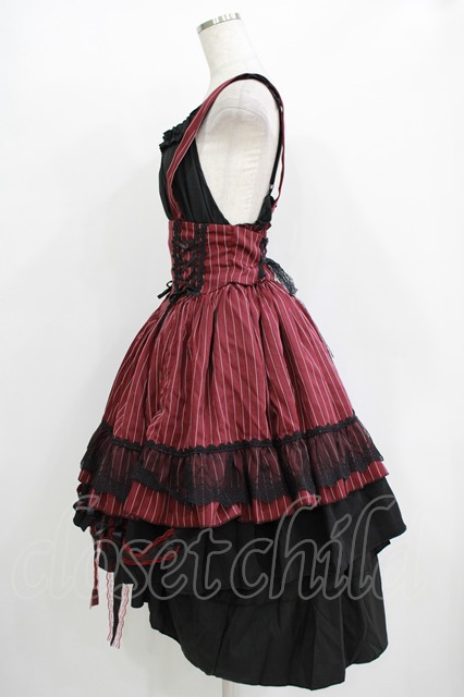 逗?(海外ロリータブランド) / ストライプジャンパースカート Free ボルドー H-25-11-01-033-EL-OP-NS-ZH [戻る]