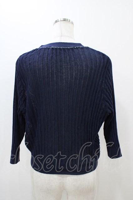an another angelus / 配色ステッチ透かし編みニットカーディガン Free NAVY H-25-11-10-049-CA-TO-NS-ZH