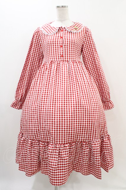 FLC / 星名桜子/ギンガムチェックワンピース M レッド H-25-11-10-016-0-OP-NS-ZH