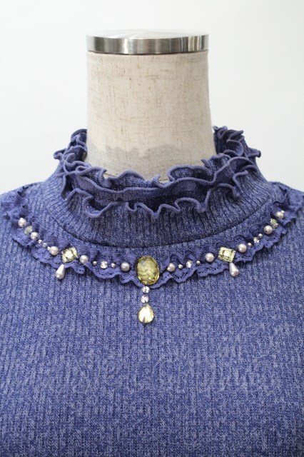 axes femme / ビジューハイネックリブトップス ブルー S-25-11-02-043-AX-TO-HR-ZS