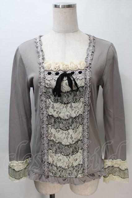 axes femme / 巻きバラレースプルオーバー グレー S-25-11-02-045-AX-TO-HR-ZS