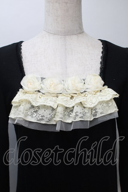 axes femme / シフォン巻きバラ付きプルオーバー 黒 S-25-11-02-047-AX-TO-HR-ZS