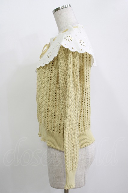Jane Marple / カットワークカラー付ニットカーディガン イエロー H-25-11-09-1052-JM-TO-KB-ZH