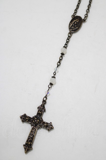 Moi-meme-Moitie / ローズ十字架ロザリオネックレス ホワイト H-25-11-09-1073-MO-AC-KB-ZH [戻る]