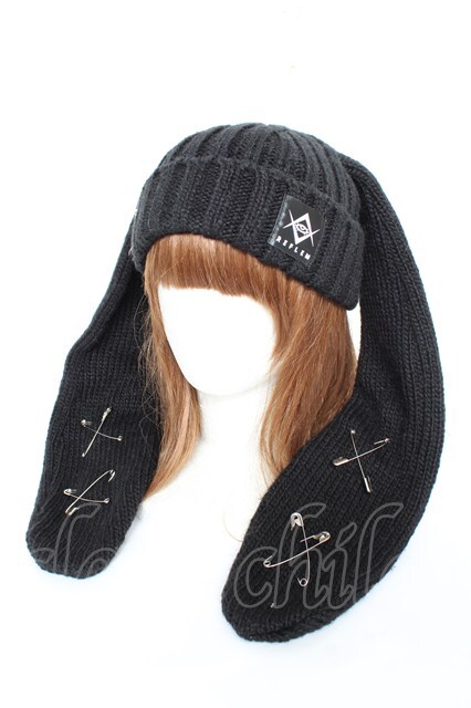 REFLEM / 安全ピン付きうさ耳ニットキャップ F ブラック Y-25-11-05-036-PU-AC-SZ-ZY