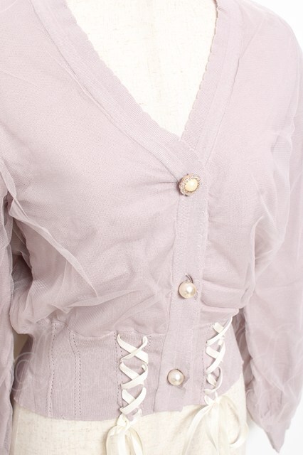 axes femme POETIQUE / レースアップショートカーディガン M ラベンダー Y-25-11-05-061-AX-TO-SZ-ZY