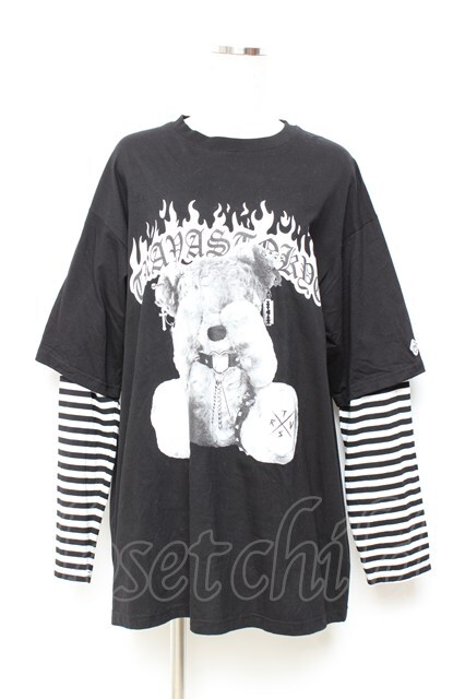 TRAVAS TOKYO / Punkish bear layered border L/S Tee/レイヤードボーダーくまプリントロングスリーブカットソー F ブラック Y-25-11-05-082-PU-TO-SZ-ZS