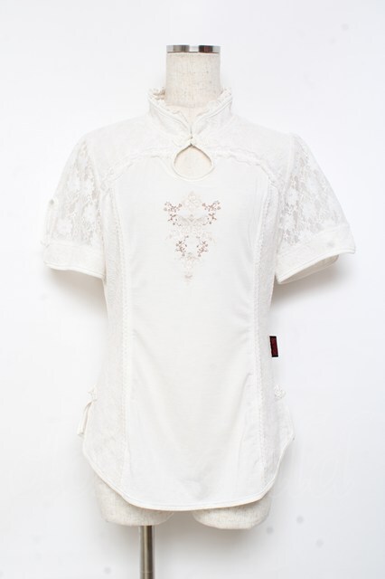 Ozz oneste / レース切替刺繍入りパフスリーブトップス 白 Y-25-11-05-099-OO-TO-SZ-OS