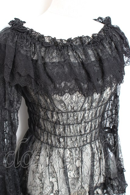 ATELIER PIERROT / Shirring Princess Sleeve Blouse-Lace- 黒 Y-25-11-05-103-EL-BL-SZ-ZY [戻る]