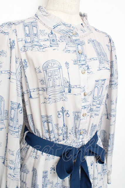 axes femme / 扉と街灯柄ワンピース F サックス Y-25-11-05-126-AX-OP-SZ-ZI [戻る]