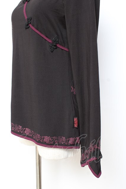 Ozz oneste / 裾プリントチャイナトップス 黒×紫 Y-25-11-05-141-OO-TO-SZ-OS [戻る]