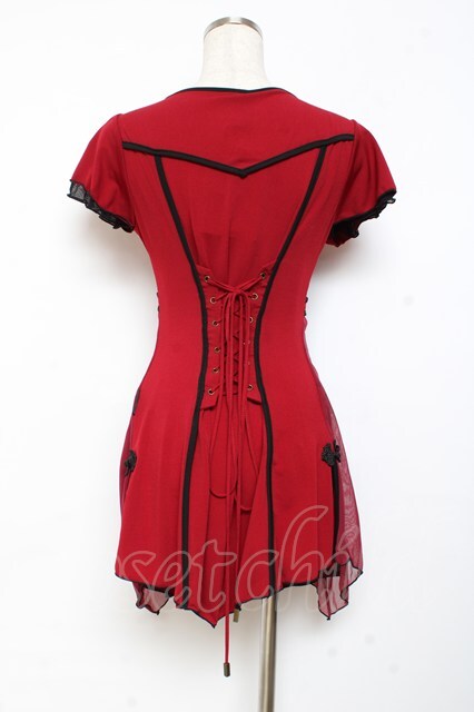 Ozz oneste / メッシュ重ねチャイナチュニック 赤 Y-25-11-05-144-OO-OP-SZ-ZY