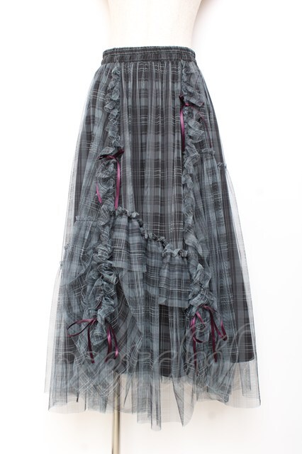 axes femme / ドロストチェックチュールスカート F グレー Y-25-11-05-159-AX-SK-SZ-ZY