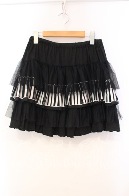 ACDC RAG / ピアノ柄ミニスカート ブラック×ホワイト O-25-11-03-064-PU-SK-IG-OS