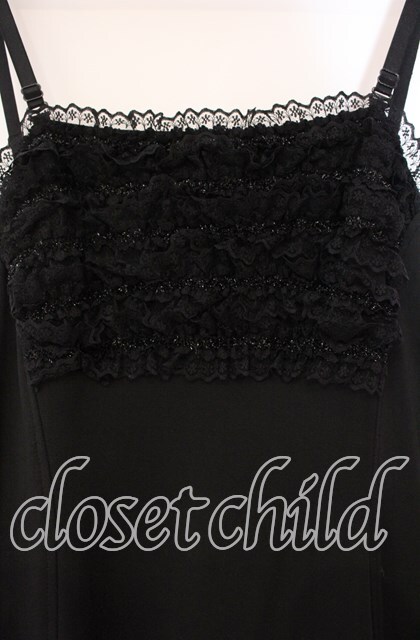 Qutie Frash / 胸フリルキャミソールワンピース ブラック O-25-11-03-058-QU-OP-IG-OS