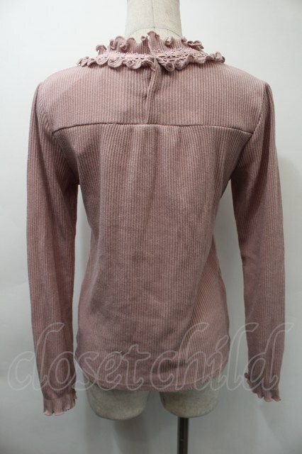 axes femme / レースリブニットトップス ピンク S-25-11-03-012-AX-TO-HR-ZS
