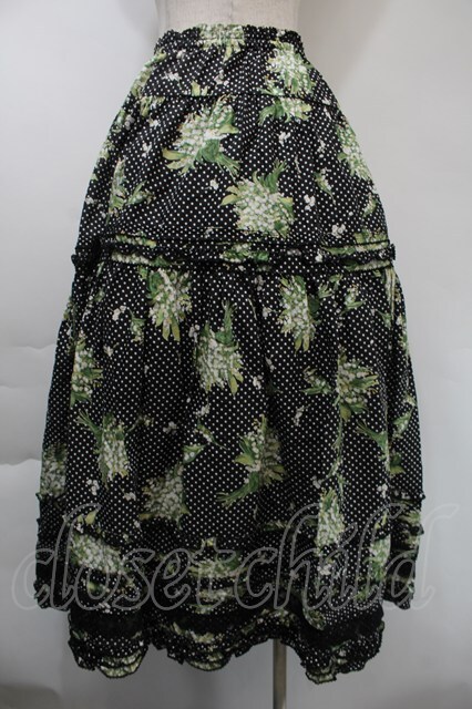 PINK HOUSE / 鈴蘭水玉プリントスカート 黒 S-25-11-03-052-LO-SK-SZ-ZS