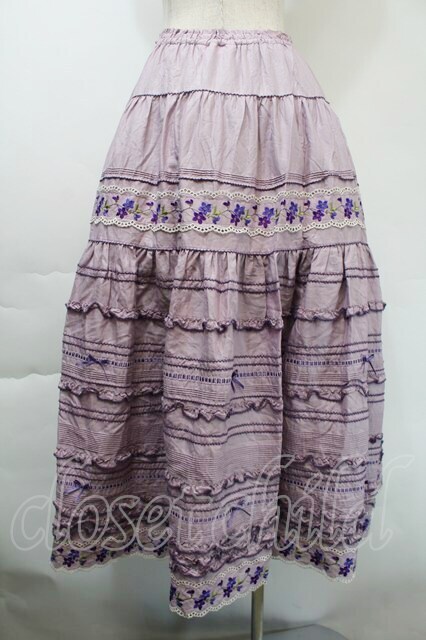PINK HOUSE / ヴァイオレット刺繍スカート ラベンダー S-25-11-03-050-LO-SK-AS-ZS
