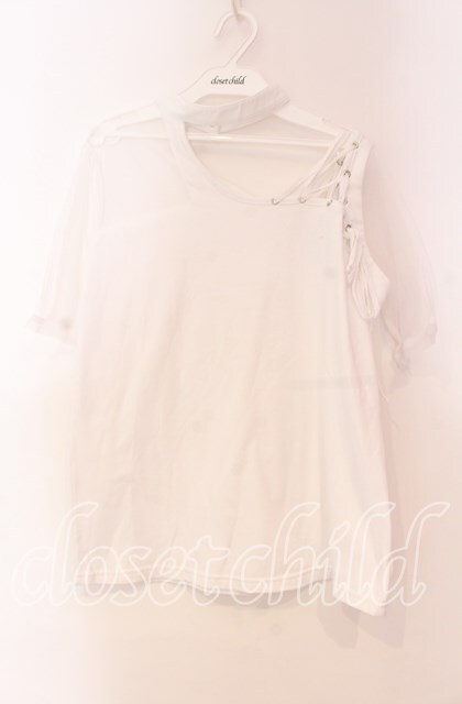 Drug Honey / メッシュ切り替えチョーカーカットソー ホワイト O-25-11-04-081-PU-TO-IG-ZT396