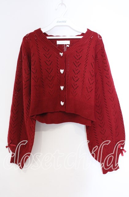 DearMyLove / キラキラハート編み柄ショートカーディガン M〜L アカ O-25-11-04-006-EL-TO-OW-OS