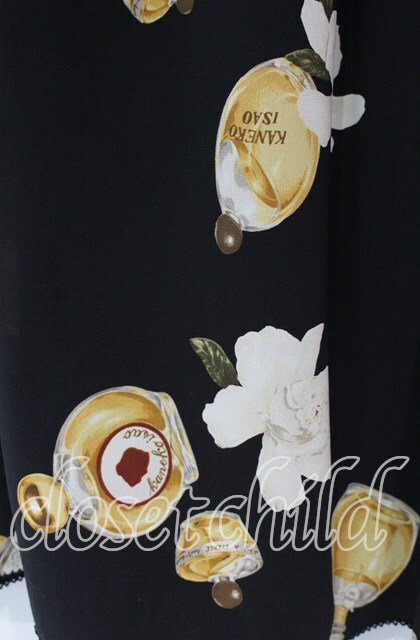 KANEKO ISAO / クチナシ&香水瓶柄スカート クロ O-25-11-04-063-EL-SK-OW-ZT1219X [戻る]