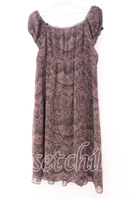 HYSTERIC GLAMOUR /ULLDANCINGLACE総柄ギャザーワンピース ピンク×クロ O-25-11-04-073-PU-OP-IG-OS