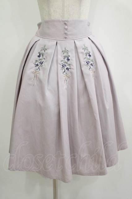 axes femme / リボンローズ刺繍タックスカート M ラベンダー H-25-11-11-027-AX-SK-NS-ZH