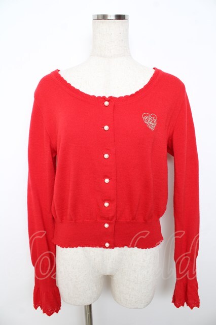 Emily Temple cute / ロゴ刺繍ニットカーディガン 赤 Y-25-11-06-024-ET-TO-SZ-ZY