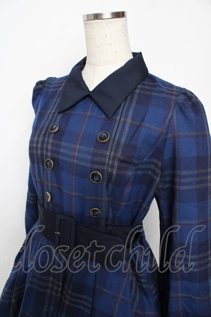 Sheglit / "Brigitta"チェックワンピース M ブルー Y-25-11-06-119-EL-OP-SZ-ZY